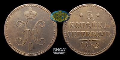 3 Копейки 1842 года, СПМ. Тип 1840-1843 годов. Ижорский монетный двор