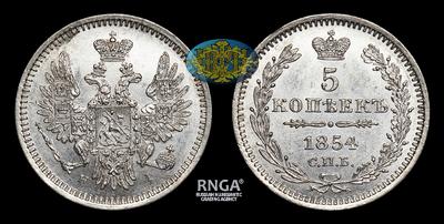 5 Копеек 1854 года, СПБ HI. Тип 1850-1855 годов. Санкт-Петербургский монетный двор
