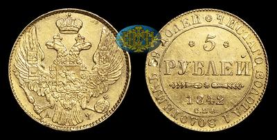 5 Рублей 1842 года, СПБ АЧ. Тип 1832-1843 годов. Санкт-Петербургский монетный двор