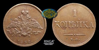Копейка 1832 года, ЕМ ФХ. Тип 1830-1838 годов. Екатеринбургский монетный двор