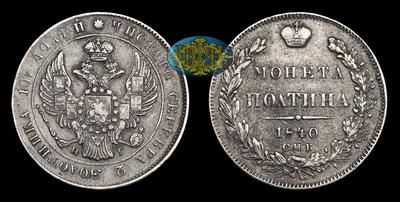 Полтина 1840 года, СПБ НГ. Тип 1845-1850 годов. Санкт-Петербургский монетный
