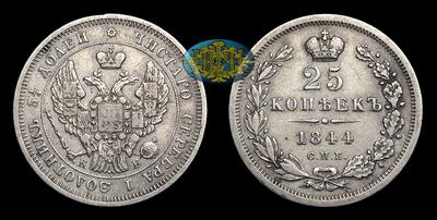 25 Копеек 1844 года, СПБ КБ. Санкт-Петербургский монетный двор