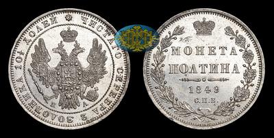 Полтина 1849 года, СПБ ПА. Тип 1847-1853 годов. Санкт-Петербургский монетный