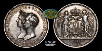 Медаль 1841 года, H.GUBE.FECIT. GUBE.F. “Свадьба В.К. Александра Николаевича и Принцессы Марии Александровны, 16 Апреля 1841 года”