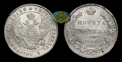 Полтина 1840 года, СПБ НГ. Тип 1845-1850 годов. Санкт-Петербургский монетный двор