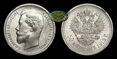 50 Копеек 1913 года, ВС. Тип 1912-1913 годов. Санкт-Петербургский монетный двор