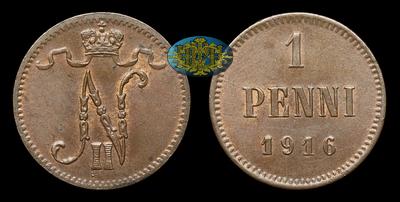 Пенни 1916 года. Тип 1895, 1898-1909, 1911-1916 годов. Гельсингфорсский