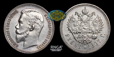 Рубль 1907 года, ЭБ. Тип 1901-1911 годов. Санкт-Петербургский монетный двор