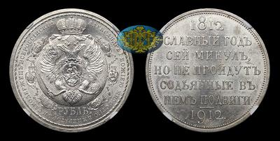 Рубль 1912 года, ЭБ. "В память 100-летия Отечественной войны 1812 года". Санкт-Петербургский монетный двор