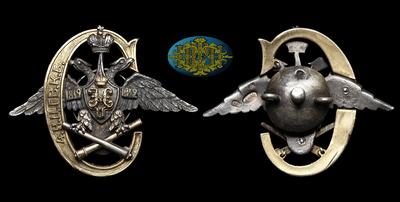 Знак 1912 года “4-й Его Императорского Высочества НаследникаЦесаревича батареи лейб-гвардии конной артилериии” Российская империя. Неизвестная мастерская.