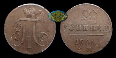 2 Копейки 1800 года, ЕМ. Тип 1797-1801 годов. Екатеринбургский монетный двор