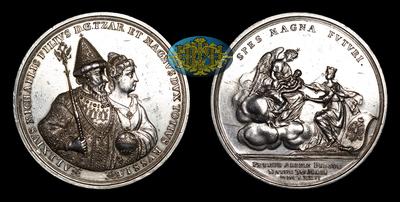 28 сентября 1645 года в Успенском соборе Московского Кремля состоялось священное коронование шестнадцатилетнего Царевича Алексея Михайловича, ставшего вторым представителем Дома Романовых, получившим титул Государя, Царя и Великого Князя всея Руси. Придя к власти в столь юном возрасте, не имеющий опыта правления страной, Алексей Михайлович во всем полагался на советы и наставления боярина Б.И.Морозова, являвшегося с самого рождения воспитателем и учителем будущего Царя. 16 января 1648 года Алексей Михайлович впервые вступил в брак. Стараниями своего наставника, женой Царя стала Мария Ильинична Милославская (1624-1669). В браке родились тринадцать детей, двое из которых – Федор III Алексеевич (1676-1682) и Иван V Алексеевич (1682-1696 годы) впоследствии взошли на русский престол. Царевна Софья Алексеевна с 1682 по 1689 годы была регентшей при малолетних Царях Иоанне V Алексеевиче и Петре I Алексеевиче (1682-1721). Умерла Мария Ильинична во время очередных родов, 3 марта 1669 года. Второй женой Алексея Михайловича стала Наталья Кирилловна Нарышкина, происходившая из старинного, но небогатого дворянского рода. Обряд бракосочетания состоялся 22 января 1671 года. В ночь с 29 на 30 мая 1672 года родился их первенец, при крещении получивший имя Петр. Точное место его рождения не известно. По мнению ряда историков, событие произошло в Теремном дворце Московского Кремля. По другим версиям в селе Коломенское или Измайлово. Появление сына было воспринято с особой радостью. Младенец был крепок и здоров. 29 июня, в день святых апостолов Петра и Павла, в Чудовом монастыре Московского кремля состоялся обряд крещения. Существует легенда о том, что рождение последнего русского Царя (1682-1721) и первого Императора Российской Империи (1721-1725) было предсказано Симеоном Полоцким, сообщившему государю, что у него родится сын, который войдет в российскую историю как ее великий правитель.