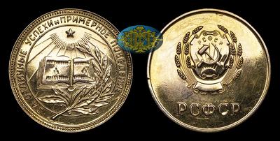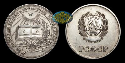 Медаль без даты «За успехи и примерное поведение» РСФСР. Тип 1985 года. Наградная школьная медаль