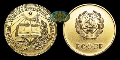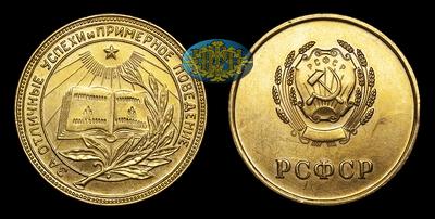 Медаль без даты «За успехи и примерное поведение» РСФСР. Тип 1977 года. Наградная школьная медаль