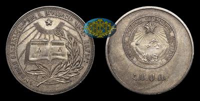 Медаль без даты «За успехи и примерное поведение» Армянская ССР. Тип 1945 года. Наградная школьная медаль