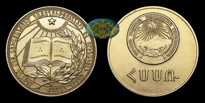 Медаль без даты «За успехи и примерное поведение» Армянская ССР. Тип 1960 года. Наградная школьная медаль