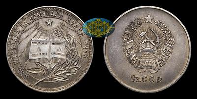 Медаль без даты «За успехи и примерное поведение» Узбекская ССР. Тип 1945 года. Наградная школьная медаль