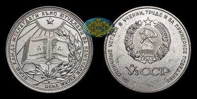 Медаль без даты «За успехи и примерное поведение» Узбекская ССР. Тип 1960 года. Наградная школьная медаль