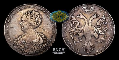 Отличительной особенностью этого рублевика является необычное изображение орла. Такой вариант оборотной стороны известен только в 1725 году и более никогда не повторялся. Для чеканки монет данного типа применялись очень низкорельефные штемпеля, что приводило к их быстрому истиранию. Также монеты данного типа практически всегда имеют большое количество отслоек. Часто бывают оцентрованы, а также несут на себе другие дефекты чеканки. На предложенном нами экземпляре подобные недостатки отсутствуют.