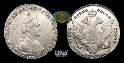 20 Копеек 1784 года, СПБ. Тип 1778, 1779, 1781, 1783-1793 годов. Санкт-Петербургский монетный двор