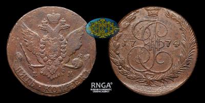5 Копеек 1774 года, ЕМ. Тип 1763-1796 годов. Екатеринбургский монетный двор