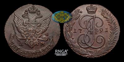 5 Копеек 1791 года, АМ. Тип 1789-1796 годов. Аннинский монетный двор