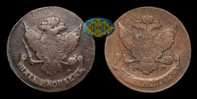 5 Копеек 1788 года, ММ. Тип 1788, 1789, 1795 годов. Перечекан из 10 копеек 1762 года. Красный монетный двор.