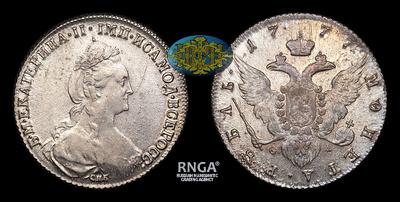 Рубль 1777 года, СПБ ФЛ. Тип 1777-1782 годов. Тип 1777-1782 годов. Санкт-Петербургский монетный двор