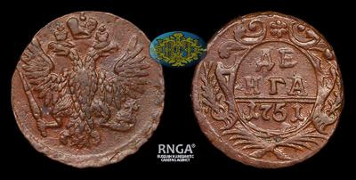 Денга 1751 года. Тип 1748-1751 годов. Екатеринбургский монетный двор