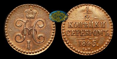 1/2 Копейки 1845 года, СМ. Тип 1839-1847 годов. Сузунский монетный двор