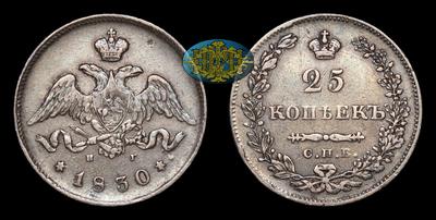 25 Копеек 1830 года, СПБ НГ. Тип 1827-1831 годов. Санкт-Петербургский монетный двор