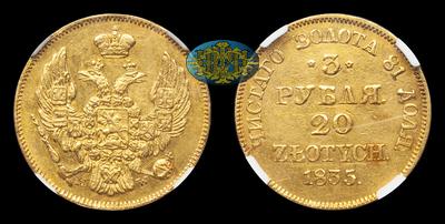 Очень редки. По официальной статистике Варшавского Монетного Двора тираж 3 Рубля-20 Злотых 1835 года, MW составил 350 штук.