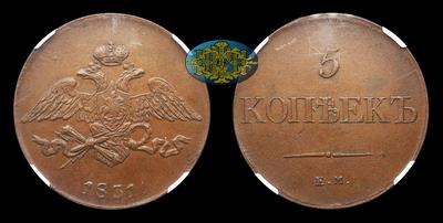 5 Копеек 1831 года, ЕМ. Тип 1830-1839 годов. Екатеринбургский монетный двор
