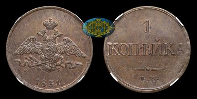 Копейка 1831 года, ЕМ ФХ. Тип 1830-1838 годов. Екатеринбургский монетный двор