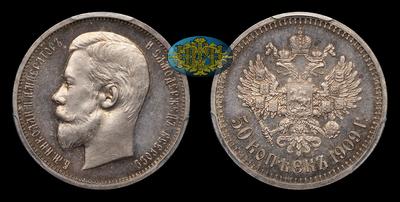 50 Копеек 1909 года, ЭБ. Тип 1895, 1896, 1898-1904, 1906-1911 годов. Санкт-Петербургский монетный двор