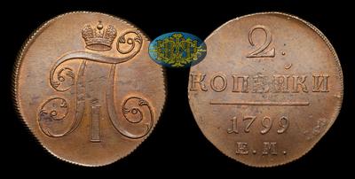 2 Копейки 1799 года, ЕМ. Тип 1797-1801 годов. Екатеринбургский монетный двор