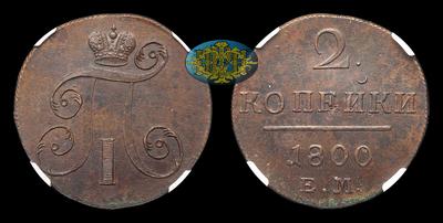 2 Копейки 1800 года, ЕМ. Тип 1797-1801 годов. Екатеринбургский монетный двор