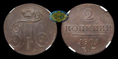 2 Копейки 1801 года, ЕМ. Тип 1797-1801 годов. Екатеринбургский монетный двор