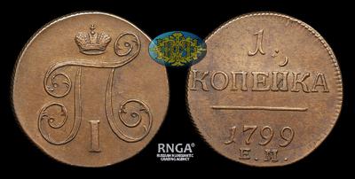 Копейка 1799 года, ЕМ. Тип 1797-1801 годов. Екатеринбургский монетный двор