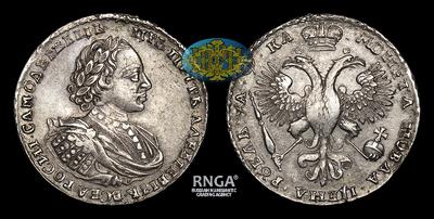 Аверс: Тип 1720-1721 годов, т.н. «Портрет в супервесте».