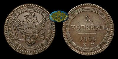 2 Копейки 1803 года, ЕМ. Тип 1802-1803 годов. Екатеринбургский монетный двор