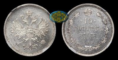 10 Копеек 1859 года, СПБ ФБ. Тип 1859-1860 годов. Санкт-Петербургский монетный двор