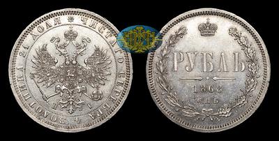 Рубль 1868 года, СПБ HI. Тип 1859-1881 годов. Санкт-Петербургский монетный двор