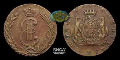 КОПЕЙКА 1776 ГОДА, КМ "СИБИРСКАЯ" / НОВОДЕЛ. ТИП 1766-1780 ГОДОВ. СУЗУНСКИЙ МОНЕТНЫЙ ДВОР