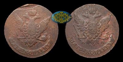 5 Копеек 1766 года, ММ. Тип 1763-1768 годов. Перечекан из 10 Копеек 1762 года. Красный монетный двор