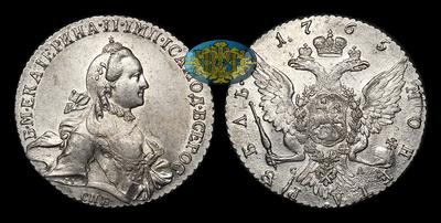 Рубль 1765 года, СПБ TI СА. Тип 1762-1765 годов, т.н. "С шарфом на шее". Санкт-Петербургский монетный двор