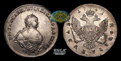 Рубль 1741 года, СПБ. Тираж 765 159 штук. Санкт-Петербургский монетный двор