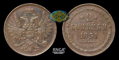 2 Копейки 1851 года, ЕМ. Тип 1849-1855 годов. Екатеринбургский монетный двор