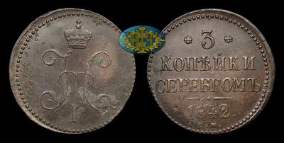 3 Копейки 1842 года, СМ. Тираж 1 336 000 штук. Сузунский монетный двор
