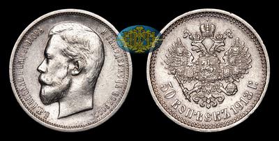 50 Копеек 1913 года, ВС. Тип 1912-1913 года. Санкт-Петербургский монетный двор